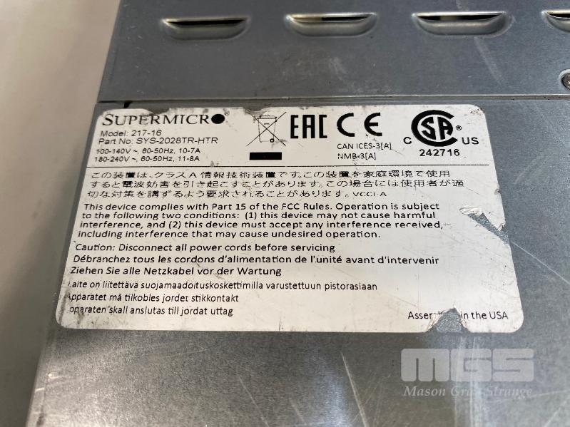 RACKMOUNT SERVER, SUPERMICRO, MODEL 217-16, 2U, 4-NODE SERVER, EACH CONTAINING 2 x XEON E5-2650 v4 @ 2.2GHz, 128GB ECC DDR4 RAM, 2 x 480GB SSD S/N:C2170FE01N10054