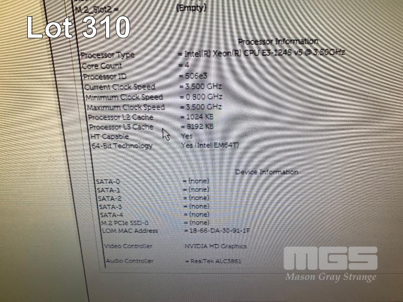 MINI-TOWER PC, DELL PRECISION 3620 WORKSTATION, XEON E3-1245 v5 @ 3.5GHz, 32GB DDR4 RAM, NO HDD, WITH CADDY, 2GB NVIDIA QUADRO P600 VIDEO (4 mDP) (NO KEYBOARD, NO MOUSE, NO POWER CABLE) S/N:4GMZSF2