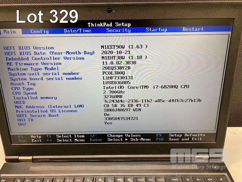 LAPTOP, LENOVO THINKPAD P50 MOBILE WORKSTATION (20EQS3BY2D), CORE i7 6820HQ (6TH GEN) @ 2.7GHz, 32GB DDR4 RAM, 512GB SSD, 15.6" WIDESCREEN (1920x1080), 4GB NVIDIA QUADRO M2000M VIDEO, Wi-Fi, BLUETOOTH, WINDOWS 10 PRO INSTALLED & POWER SUPPLY S/N:PC0L3D0Q