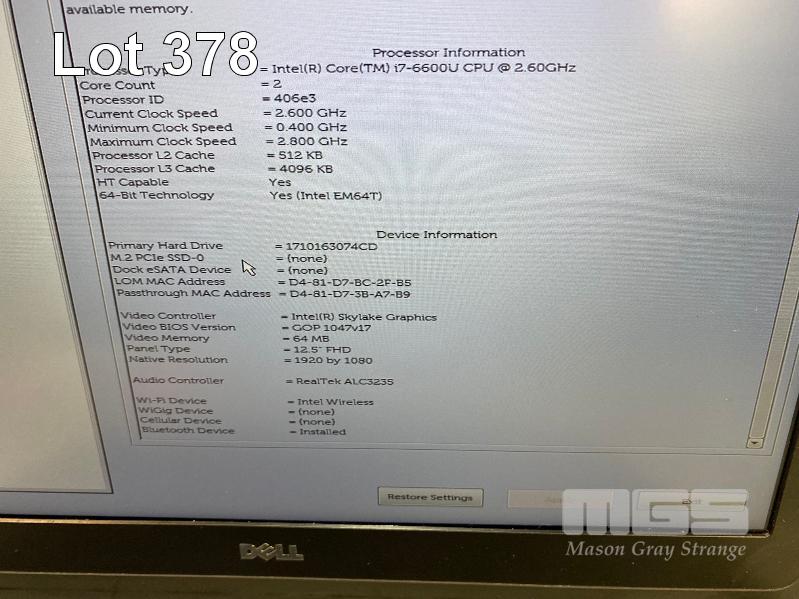 LAPTOP, DELL LATITUDE E7270, CORE i7 6600U (6TH GEN) @ 2.6GHz, 16GB DDR4 RAM, 512GB M.2 SSD, 12.5" WIDESCREEN (1920x1080), INTEL SKYLAKE GRAPHICS, Wi-Fi, BLUETOOTH, WINDOWS 10 HOME INSTALLED, DOCKING STATION & POWER SUPPLY S/N:27XK2G2