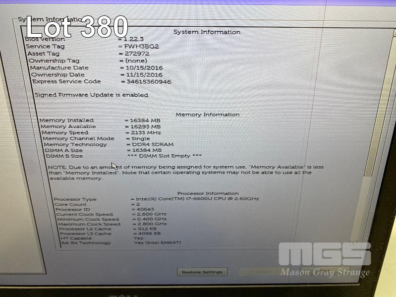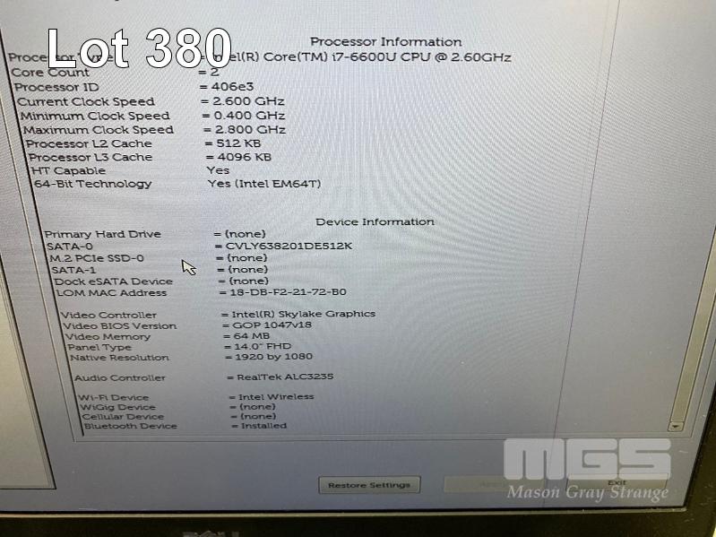 LAPTOP, DELL LATITUDE E5470, CORE i7 6600U (6TH GEN) @ 2.6GHz, 16GB DDR4 RAM, 512GB M.2 SSD, 14" WIDESCREEN (1920x1080), INTEL SKYLAKE GRAPHICS, Wi-Fi, BLUETOOTH, WINDOWS 10 HOME INSTALLED, DOCKING STATION & POWER SUPPLY (NOTE: LINES ON SCREEN) S/N:FWH3BG2