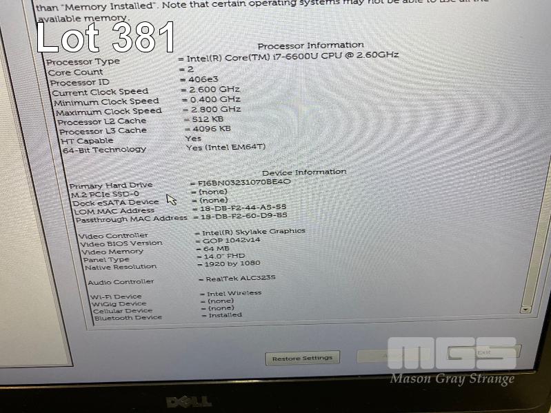 LAPTOP, DELL LATITUDE E7470, CORE i7 6600U (6TH GEN) @ 2.6GHz, 16GB DDR4 RAM, 512GB M.2 SSD, 14" WIDESCREEN (1920x1080), INTEL SKYLAKE GRAPHICS, Wi-Fi, BLUETOOTH, WINDOWS 10 HOME INSTALLED, DOCKING STATION & POWER SUPPLY (NOTE: NO BATTERY) S/N:6XBDPF2
