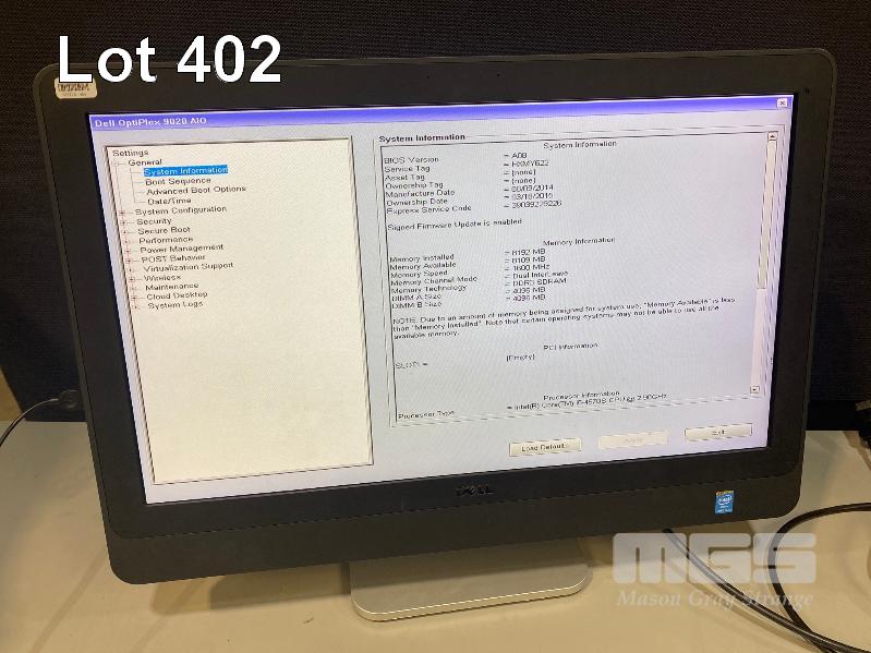 ALL-IN-ONE PC, DELL OPTIPLEX 9020, CORE i5 4570S (4TH GEN) @ 2.9GHz, 8GB DDR3 RAM, NO HDD, INBUILT 23" WIDESCREEN (1920x1080) (NO KEYBOARD, NO MOUSE) S/N:HXMY622