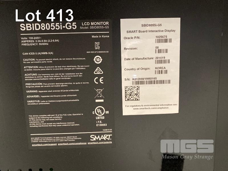 MONITOR, SMART BOARD 55" COMMERCIAL LCD INTERACTIVE TOUCH DISPLAY, MODEL SBID8055i-G5, HDMI INPUT (NO REMOTE, NO STAND) S/N:K012HW19M0165