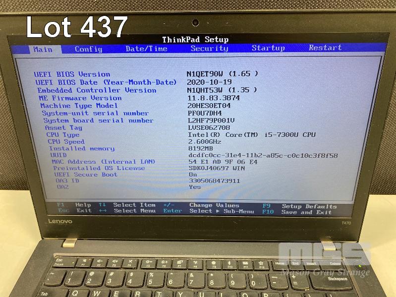 LAPTOP, LENOVO THINKPAD T470 (20HES0ET04), CORE i5 7300U (7TH GEN) @ 2.6GHz, 8GB DDR4 RAM, 256GB NVMe M.2 SSD, 14" WIDESCREEN (1366x768), INTEL HD VIDEO, Wi-Fi, BLUETOOTH, WINDOWS 10 PRO INSTALLED & POWER SUPPLY (NOTE: MINOR MARKS ON SCREEN, NO BATTERY) S/N:PF0U7DH4