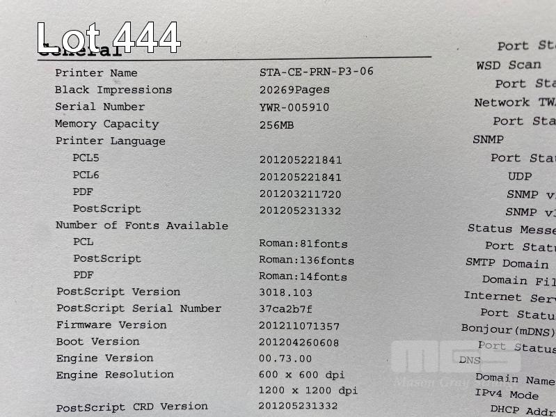 PRINTER, FUJI XEROX DOCUPRINT M355 df MFC LASER, USB, NETWORK, 20,269 PAGES (TEST PAGE ATTACHED) S/N:YWR005910