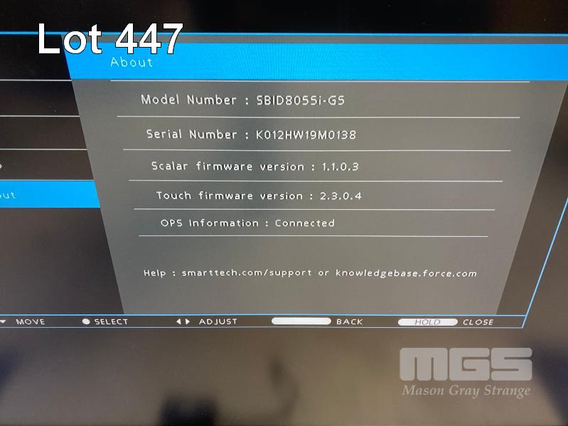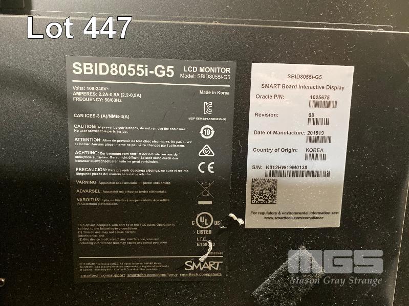 MONITOR, SMART BOARD 55" COMMERCIAL LCD INTERACTIVE TOUCH DISPLAY, MODEL SBID8055i-G5, HDMI INPUT (NO REMOTE, NO STAND) S/N:K012HW19M0138