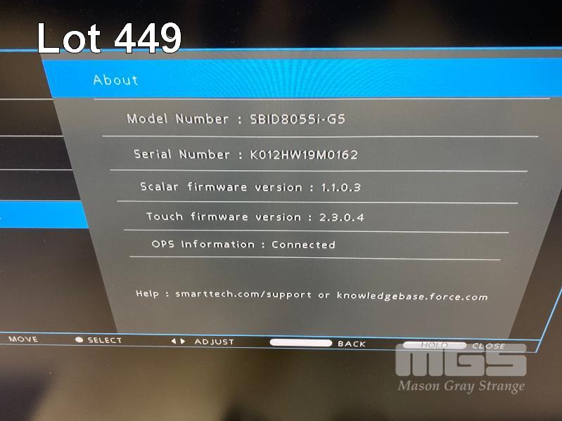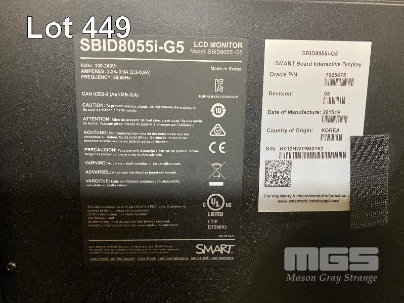 MONITOR, SMART BOARD 55" COMMERCIAL LCD INTERACTIVE TOUCH DISPLAY, MODEL SBID8055i-G5, HDMI INPUT (NO REMOTE, NO STAND) S/N:K012HW19M0162