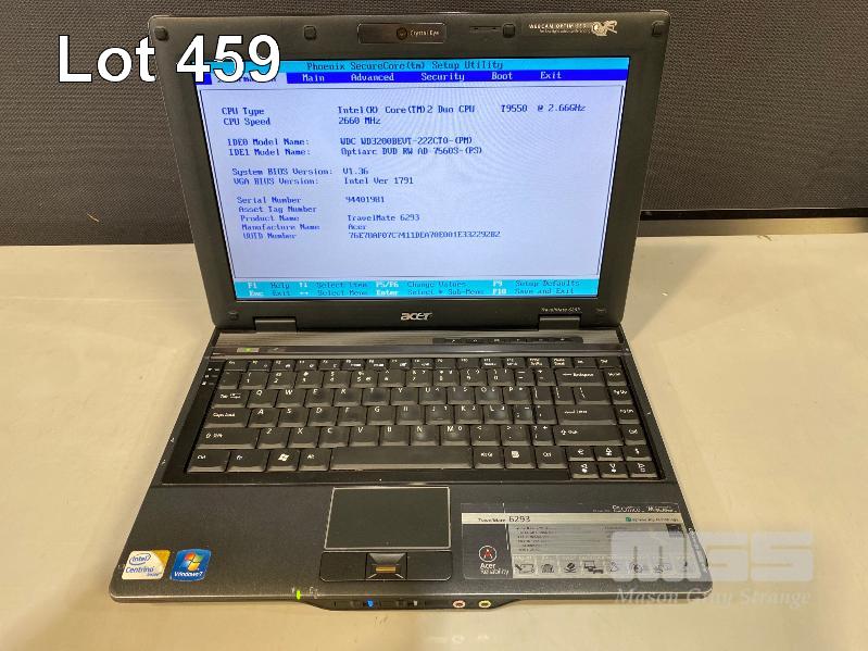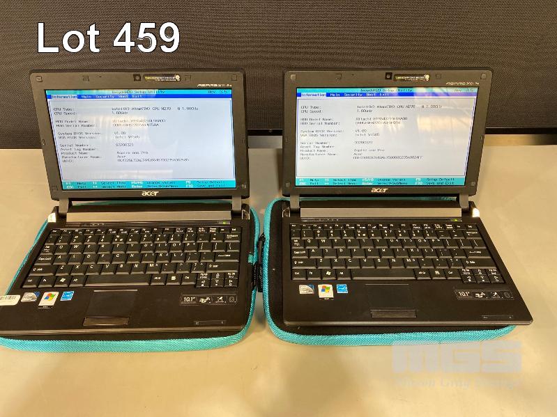2 x LAPTOPS, ACER ASPIRE ONE PRO, ATOM N270 @ 1.6GHz, 2GB RAM, 160GB HDD WITH POWER SUPPLIES & SLEEVE 1 x LAPTOP, ACER TRAVELMATE 6293, CORE 2 DUO T9550 @ 2.66GHz, 3GB RAM, 320GB HDD (NO POWER SUPPLY) S/N:93200321, 93200320, 93200593323