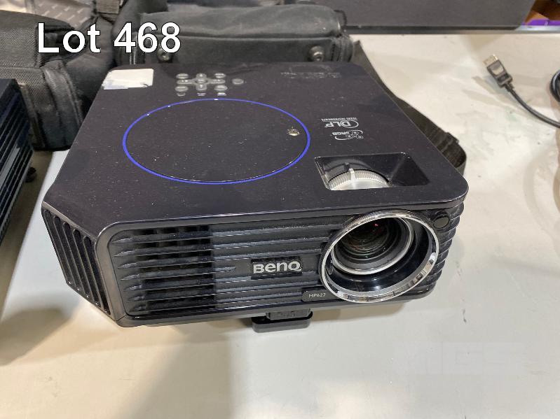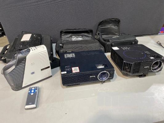 3 x DATA PROJECTORS WITH CARRY BAGS INC HP MP3135 WITH REMOTE, BENQ MP620p (NO REMOTE), BENQ MP622 (NO REMOTE)