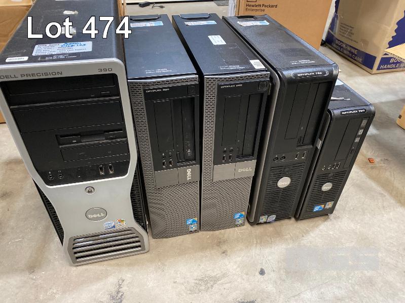 5 x ASST COMPTUERS INC. DELL PRECISION 390, CORE 2 QUAD Q6700 @ 2.66GHz, 2GB RAM, 2 x 250GB HDD DELL OPTIPLEX 960, CORE 2 QUAD Q9400 @ 2.66GHz, 4GB RAM, 160GB HDD DELL OPTIPLEX 980, CORE i5 670 @ 3.47GHz, 4GB RAM, 160GB HDD DELL OPTIPLEX 755, CORE 2 QUAD Q6700 @ 2.66GHz, 4GB RAM, 250GB HDD DELL OPTIPLEX 780, CORE 2 QUAD @ Q9400 @ 2.66GHz, 4GB RAM, 160GB HDD (NO KEYBOARDS, NO MICE, NO POWER CABLES) S/N:J34QVC1, 13PZ22S, 27J972S, 5M8WX1S, 5BFT52S