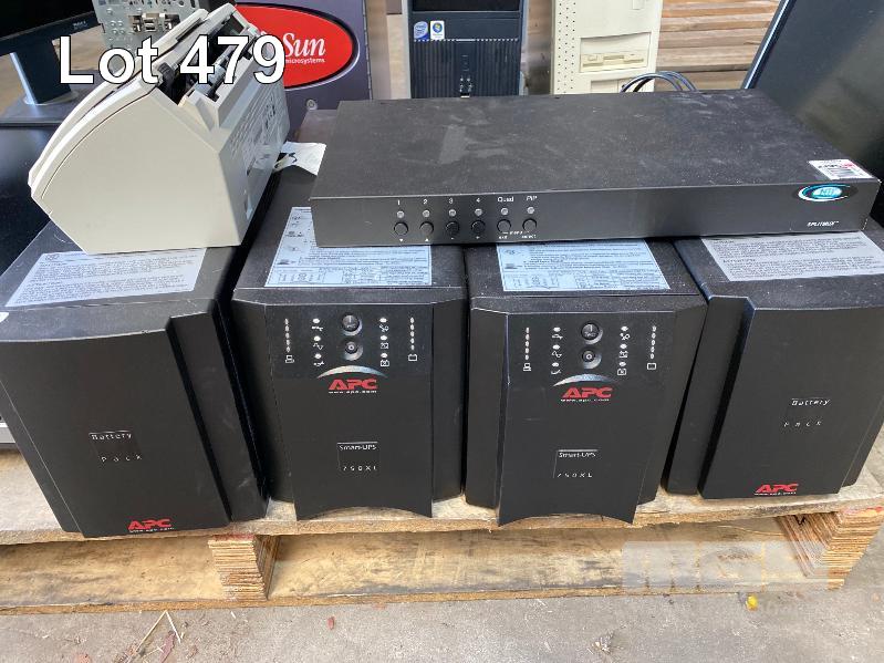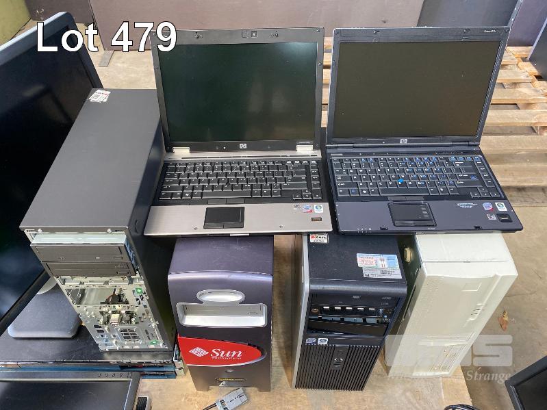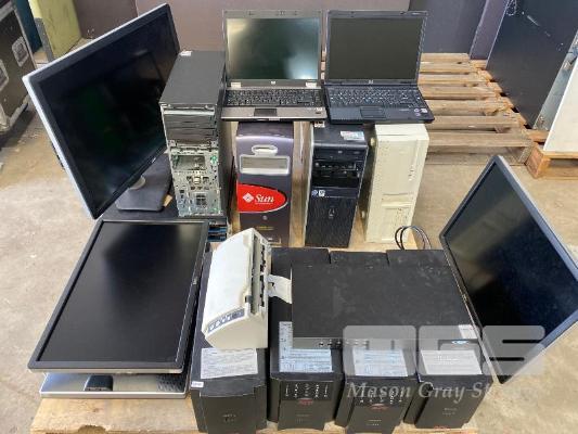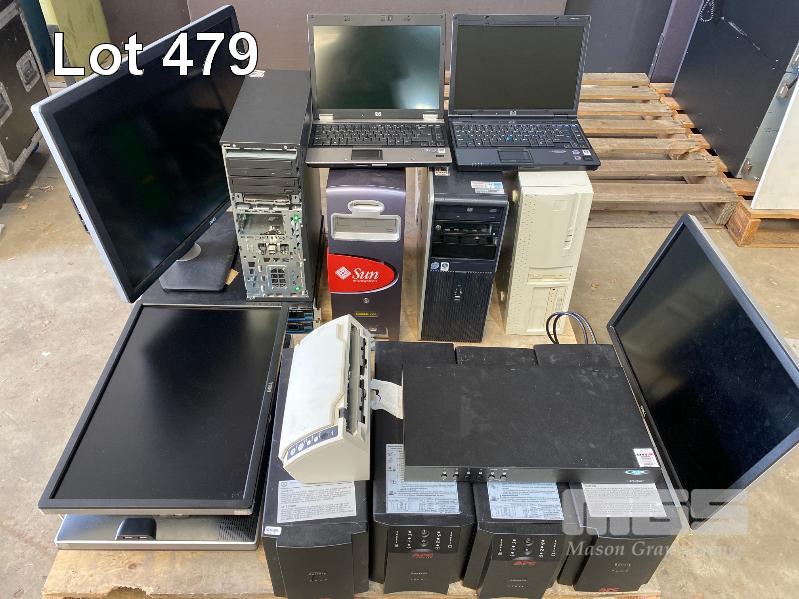 PALLET LOT ASST MONITORS (VARIOUS ISSUES), INCOMPLETE COMPUTERS, APC UPS (FAULTY), 2 x OLD LAPTOPS ETC