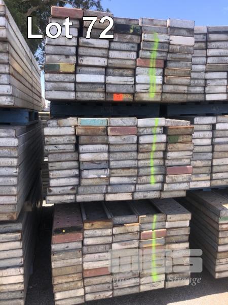 150 (APPROX) SCAFFOLDING GALV WALK PLATES, 3 x PALLETS, 2420 X 225 mm EACH.