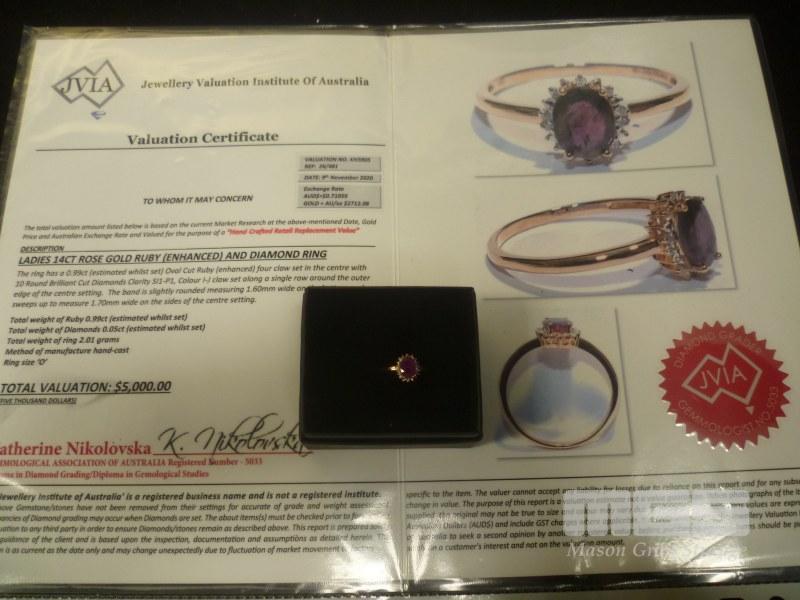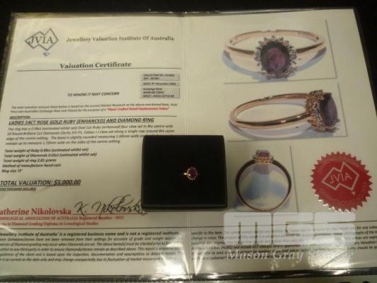 14K ROSE GOLD RUBY (ENHANCED) DIAMOND RING (VALUATION $5,000)