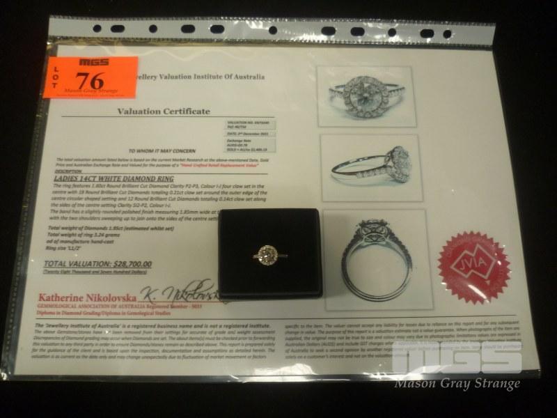 14CT GOLD 1.60ct HALO DIAMOND RING I-J COLOUR P1-P2 WITH 30 BRILLIANT CUT DIAMONDS (0.35ct TDW) SIZE L.5 COME WITH VALUATION FOR $28,700