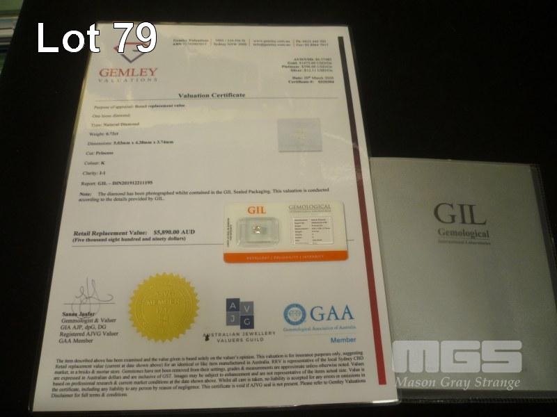 0.72ct NATURAL DIAMOND, PRINCESS CUT, K COLOUR, I1 CLARITY, UNSET, SEALED WITH AIG REPORT, VALUATION OF $5,890.00