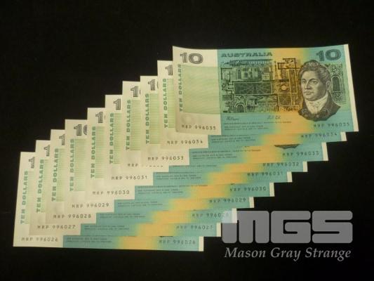 1991 10 x 10 DOLLAR FRAZER STONE NOTE CONSEC UNC