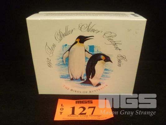 ROYAL AUSTRALIAN MINT, 1992, BIRDS OF AUSTRALIA, $10 PIEDFORT SILVER PROOF COIN, EMPEROR PENGUIN
