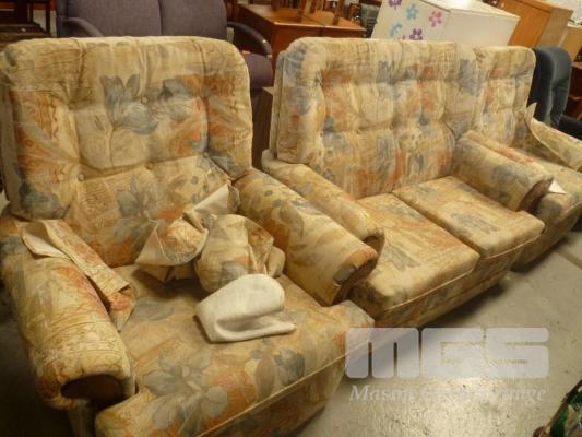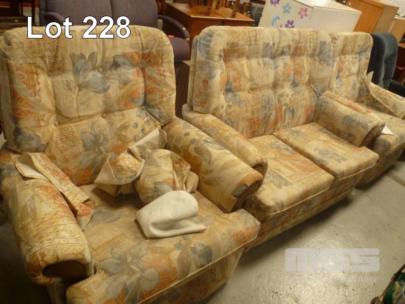 FLORAL FABRIC HIGH BACK LOUNGE SUITE COMPRISING 2-SEATER LOUNGE AND 2 x ARMCHAIRS