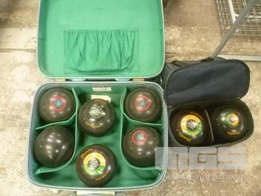 6 x HENSELITE LAWN BOWLS AND CARRY CASES