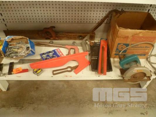 TOOLS INCL MAKITA CIRCULAR SAW, VINTAGE LEVELS & OTHER SAWS