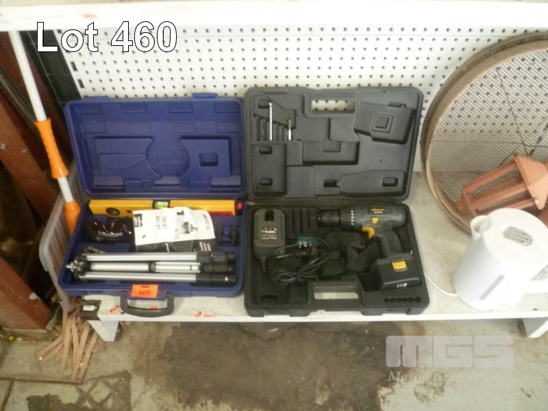 LASER LEVEL, CORDLESS DRILL, KETTLE & VINTAGE GOLD SNIFFER