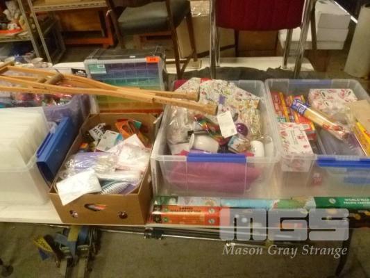 OFFICE STATIONERY, PARTY SUPPLIES, SHOPPING BAGS, ETC, 1 x TABLE