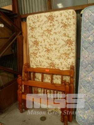 2 x COLONIAL STYLE WOODEN SINGLE BEDS WITH MATTRESSES AND SLATS (NO BOLTS)