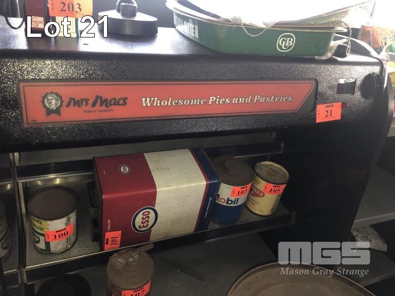 MRS MACS PIE WARMER DISPLAY UNIT 3 TIER WITH KEY, 240v WITH 5 TIER TIMBER/STEEL PRODUCT STAND 550 x 440 x 1350mm (H)