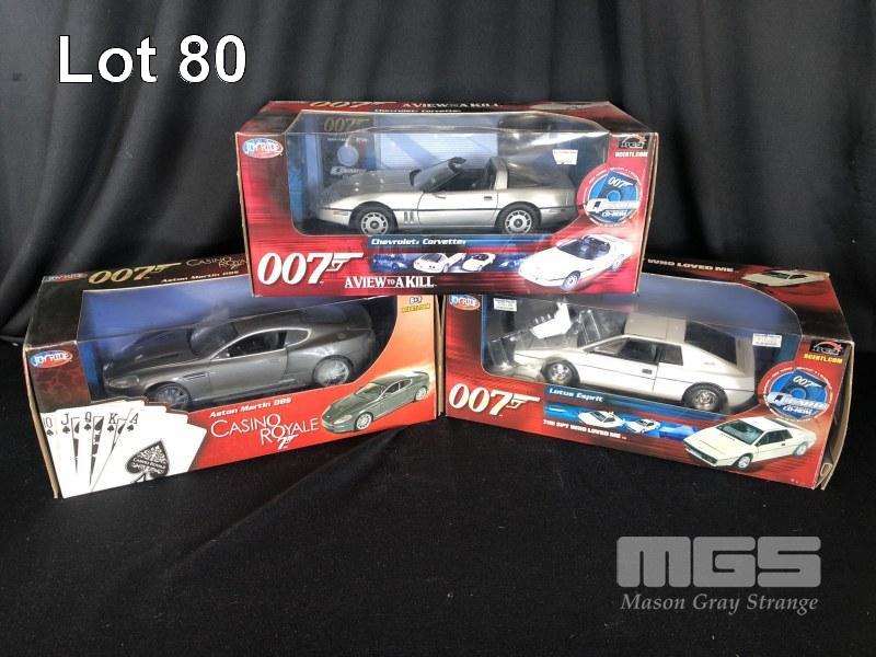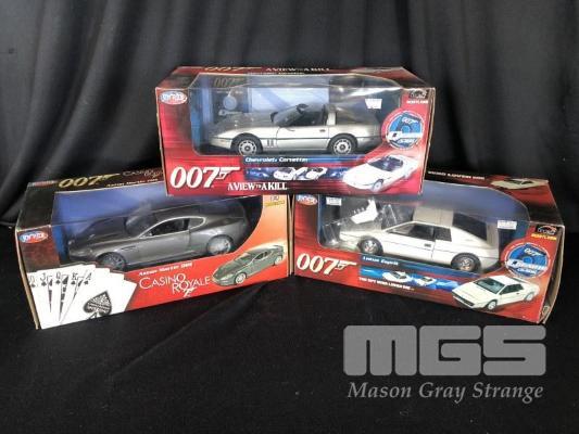 4 x 007 DIE CAST CARS IN ORIGINAL BOXES, LOTUS ESPIRIT, ASTON MARTIN DB5, CORVETTE, JAGUAR XKR ROADSTER