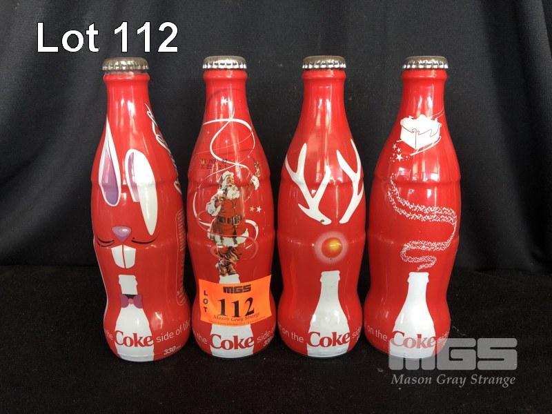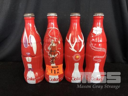 4 x COLLECTABLE GLASS COKE BOTTLES, CIRCA 2006