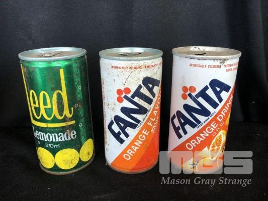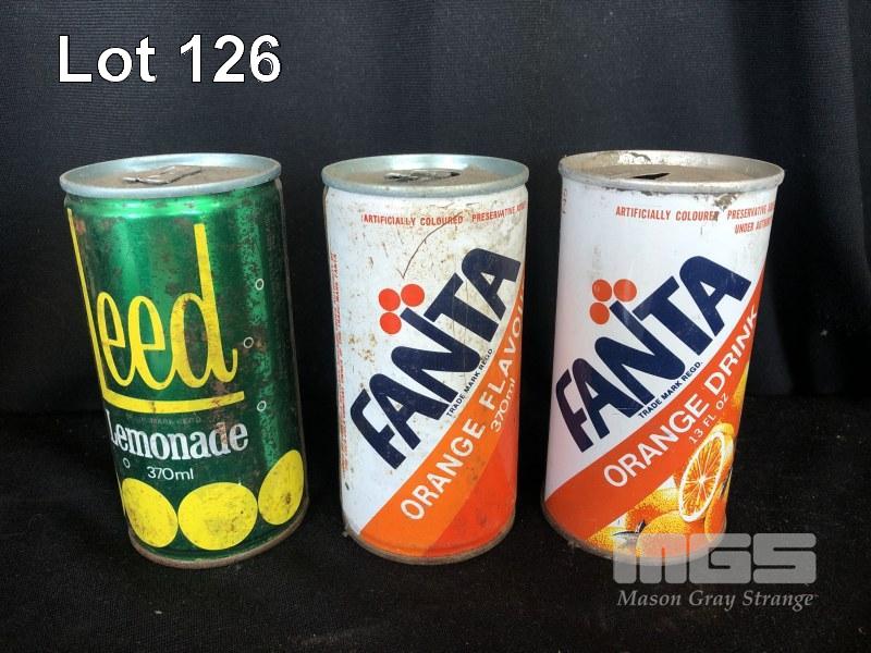 3 x COLLECTABLE CANS, 2 x FANTA, 1 x LEED