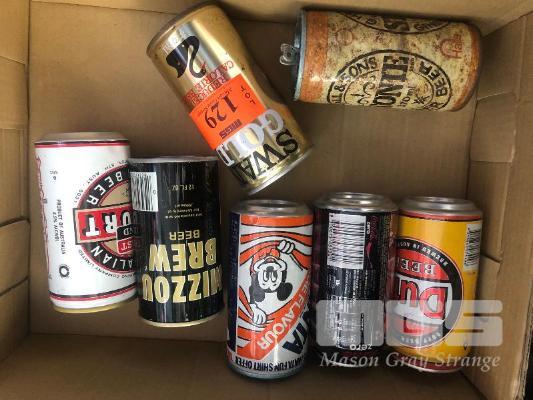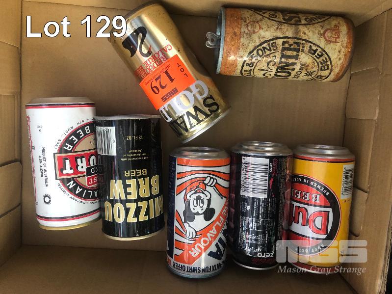 6 x COLLECTABLE VINATGE CANS, DUFF BEER, DISNEY FANTA, JAMES HARDIE WEST END, SWAN GOLD, G. HALL & SONS, TIGER COUNTRY