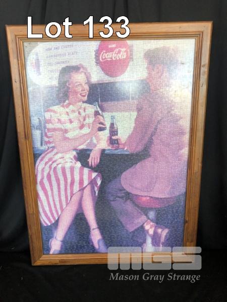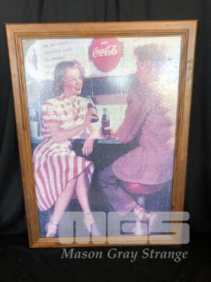 FRAMED COCA-COLA PUZZLE, TIMBER FRAME, GLASS FRONT, 770 x 560mm