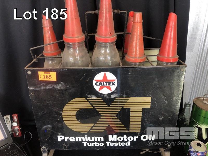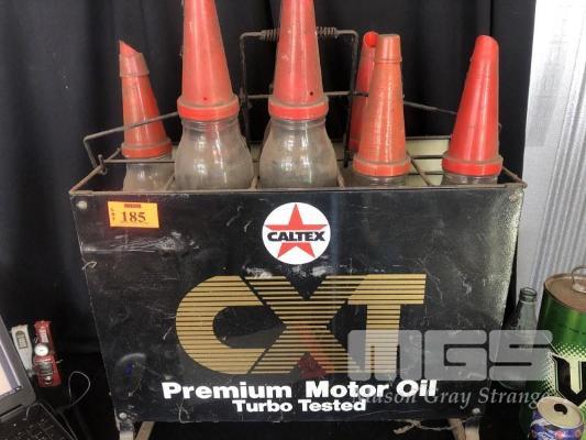 CALTEX CXT OIL RACK WITH 8 x OIL POURERS & GLASS BOTTLES