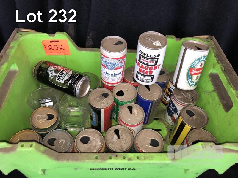 20 x ASSORTED COLLECTABLE BEER CANS, BUD, PAYLESS, KESTNER, AND MORE! WITH 4 x GLASS TUMBLERS
