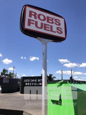 ROBS FUELS DOUBLE SIDED ILLUMINATED SIGN, APPROX 7.5m TALL