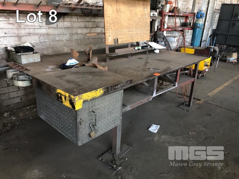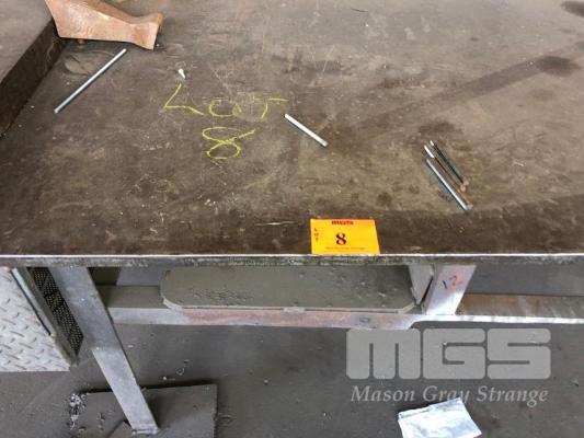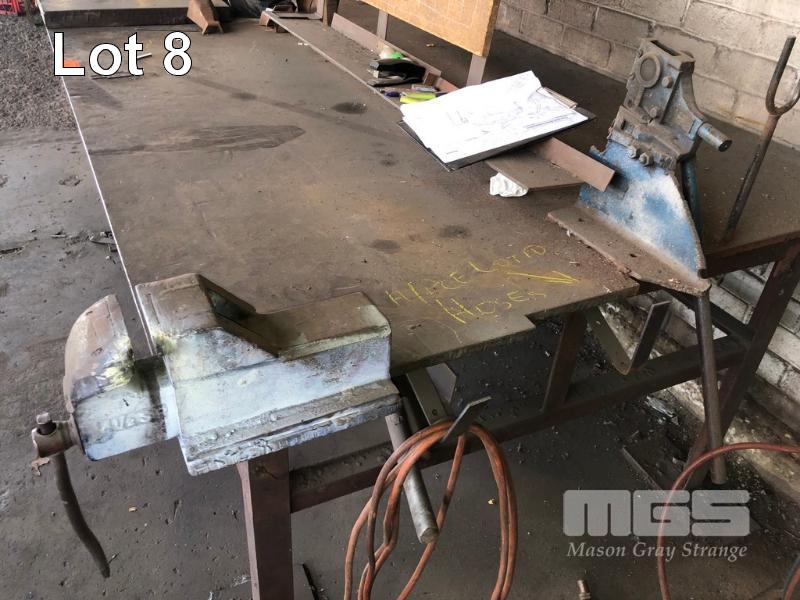 LARGE PLATE TOP FABRICATORS BENCH, 2500 x 1550 x 12mm WITH 4" VICE & 50mm THICK HAMMER PLATE & HAND SHEAR