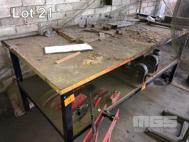WORK BENCH, STEEL FRAME, PARTICLEBOARD TOP, 2100 x 950mm WITH UNDER SHELF