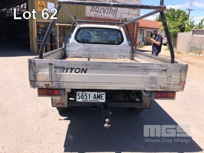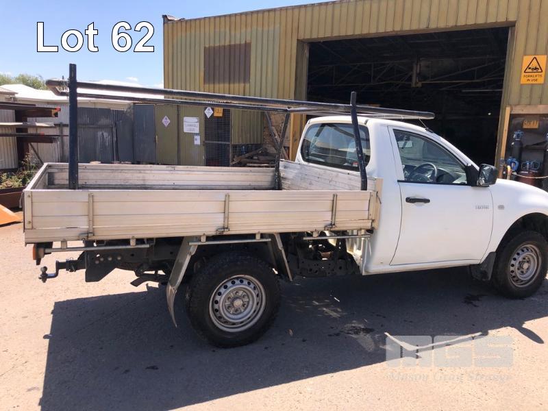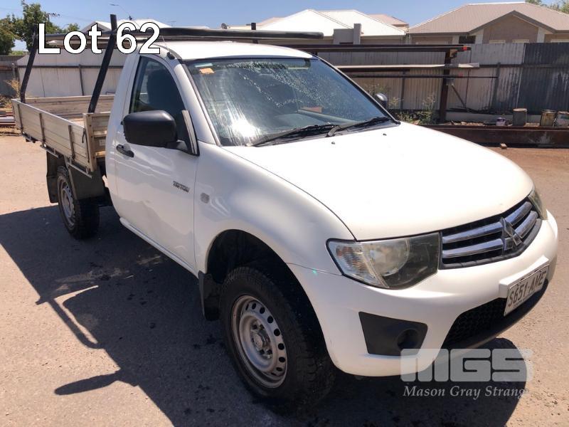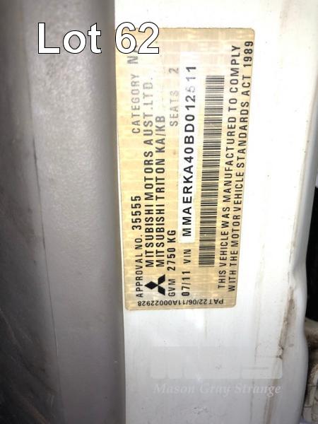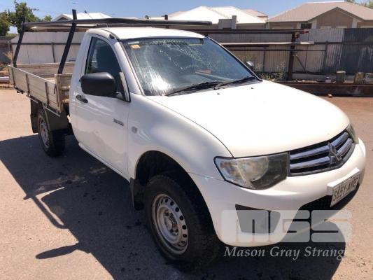 2011 MITSUBISHI TRITON 24D SINGLE CAB UTILITY REG: S651 AME VIN: MMAERKA40B0BD012511 ODO: 186277 4 CYLINDER, AUTOMATIC TRANSMISSION, DIESEL TURBO, 2 SEAT, AIR CON, TOW BAR, MOD: KA4THERUZR8 ENG 4D56 STOCK RACK ALLOY TRAY 2400 x 1800mm DRIVES SIDE DOOR DENT (WITH 1 KEY/S, WITH SERVICE BOOKS)
