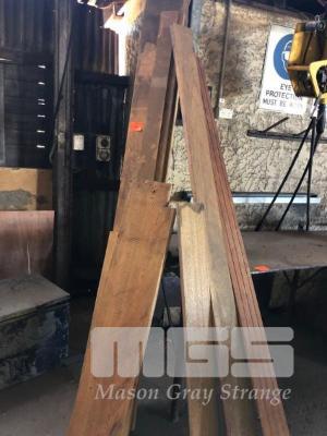 5 x PIECES HARDWOOD, 1 @ 2600 x 270 x 50mm 3 @ 1200 x 270 x 50mm APPROX & 1 @ 2200 x 150 x 50mm APPROX AND QUANTITY OF SKIRTING BOARDS.