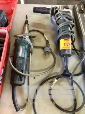METABO ANGLE GRINDER, 125mm & MAKITA STRAIGHT SHAFT GRINDER, 240V, GDO81DC