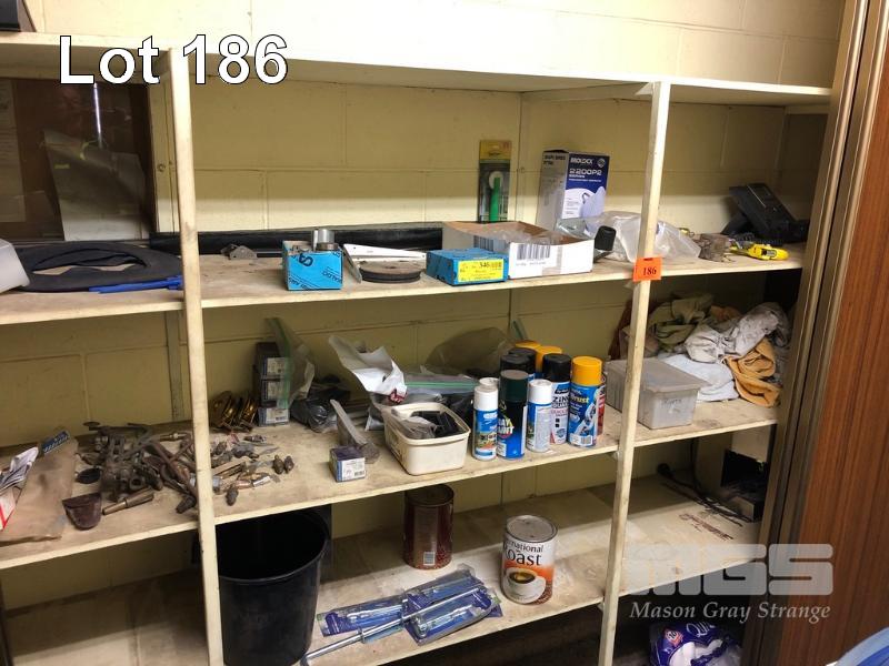 SPRAY CANS, VARIOUS COLOURS, OXY/ACC TIPS, PAD BOLTS, BEARING UNITS, MOLDEX RESPIRATORS, CONTENTS CUPBAORD