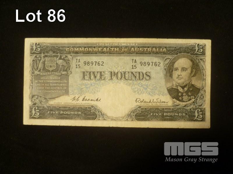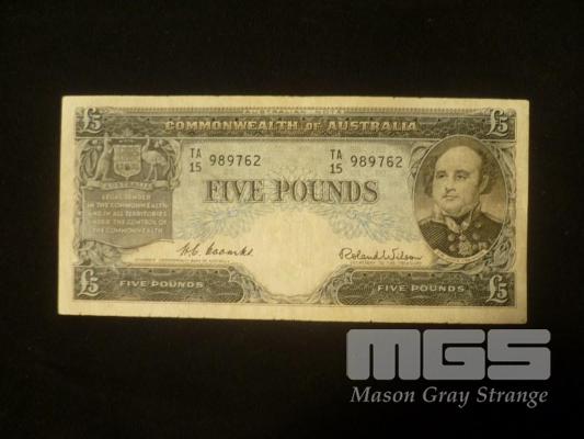 1954 COMMONWEALTH OF AUSTRALIA, 5 POUND BANKNOTE, COOMBS/WILSON, TA15 989762