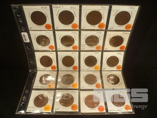 SHEET OF AUSTRALIA PENNY'S, ASSORTED DATES, INCLUDES 1931 DROPPED 'I'