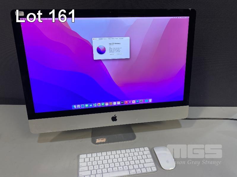 APPLE iMAC (A2115), CORE i5 8500 (8TH GEN) @ 3GHz, 8GB DDR4 RAM, 256GB NVMe SSD, BUILT-IN 27" RETINA 5K DISPLAY (5120x2880), 4GB AMD RADEON PRO 570X VIDEO, Wi-Fi, USB-C, MAC OS 12 INSTALLED (NOTE: DAMAGED SCREEN TOP RIGHT CORNER) (WITH AS NEW WIRELESS KEYBOARD (A2450) & WIRELESS MOUSE (A1657) NO CABLE) S/N:C02C80PMJV3X
