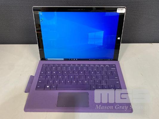 TABLET PC, MICROSOFT SURFACE PRO 3, MODEL 1631, CORE i5 4300U (4TH GEN) @ 1.9GHz, 8GB RAM, 256GB SSD, 12" TOUCHSCREEN, Wi-Fi, WINDOWS 10 PRO INSTALLED, KEYBOARD TYPE COVER & POWER SUPPLY S/N:023165453153