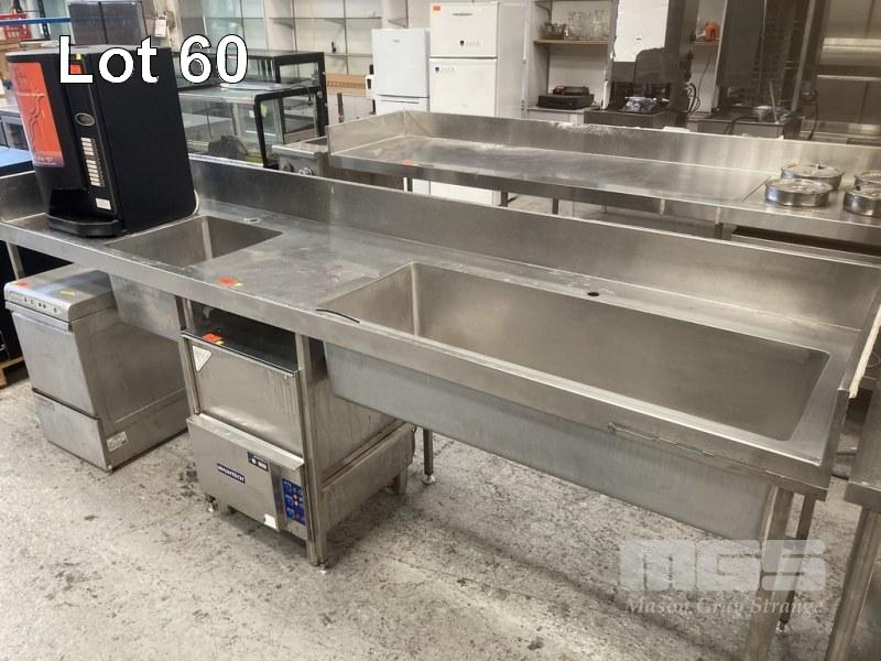 STAINLESS STEEL, TWIN BOWL SINK, 290 x 70cm WITH SPLASHBACK