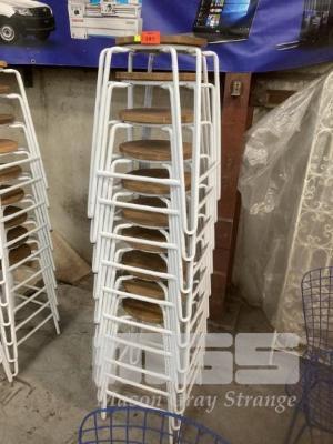 10 x LOWLINE STOOLS, STEEL FRAME, TIMBER SEAT