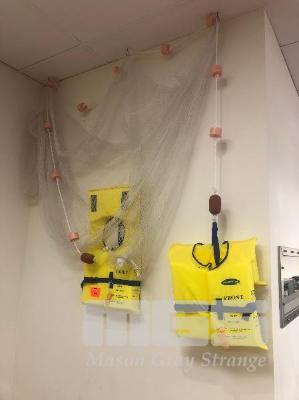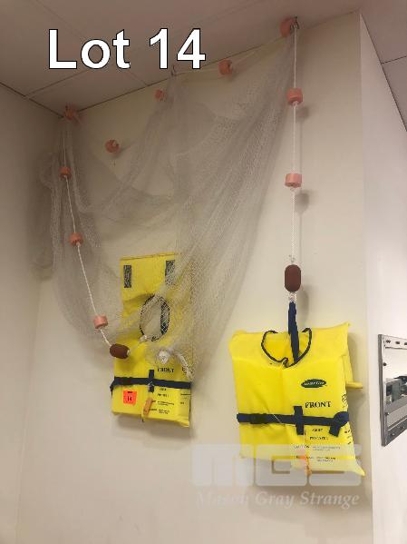 NAUTICAL WALL ART, 2 x MARLIN LIFE VESTS & FISHING NET